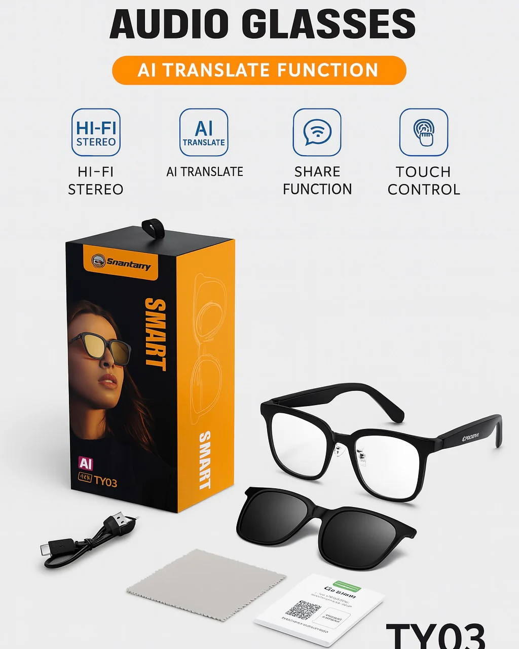 Smartberry TY03 Smart Audio Glasses عینک هوشمند امکان اتصال به گوشی از طریق بلوتوث و اپ اختصاصی، پخش و کنترل موسیقی